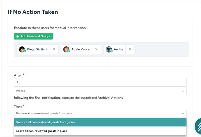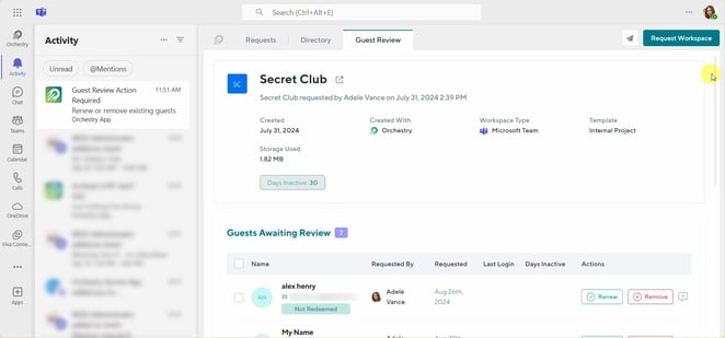 Guest reviews can be delegated to team owners, or to specific users in the organization to evaluate whether these accounts should have their access to these spaces extended or removed.