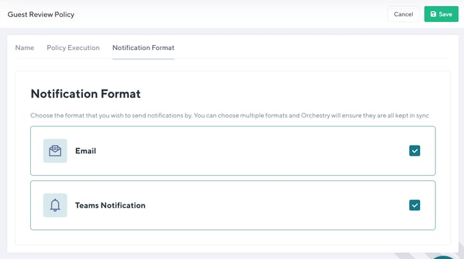 When the policy is triggered, they will be notified by Orchestry via Teams and/or email.