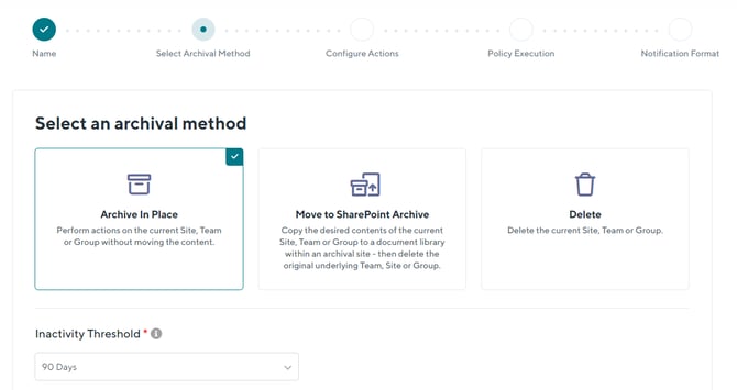 - Archive In-Place: Nothing is moved or deleted. You can configure your policy restrict access to the workspace incase it's needed again.