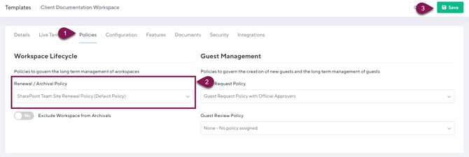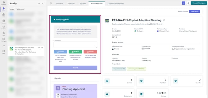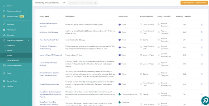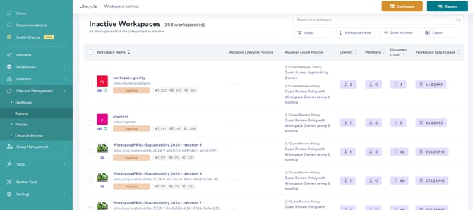 These policies trigger automated workflows when a workspace has been inactive for a period of time, notifying the workspace owner to either renew the workspace, archive it, or even delete it.