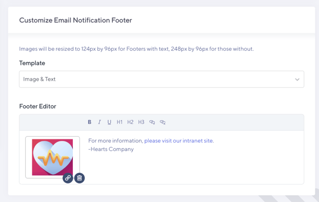 Admins have four options for customizing the email notification footer: