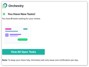 - My Tasks Email: Fixed an issue where Classic Outlook was rendering two buttons in the Orchestry task email, rather than one.