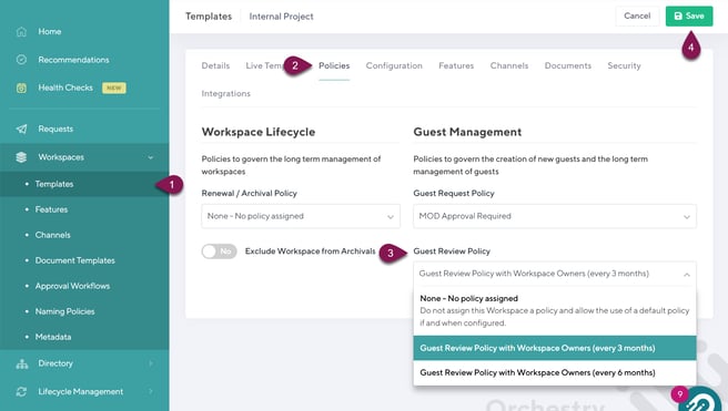 Assigning Guest Review Policies to Workspace Templates