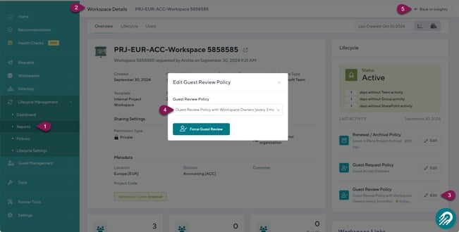Assigning Guest Review Policies to Workspaces