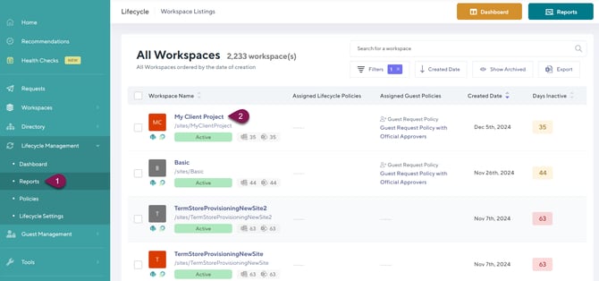 1. Go to the 'Reports' page found under 'Lifecycle Management'